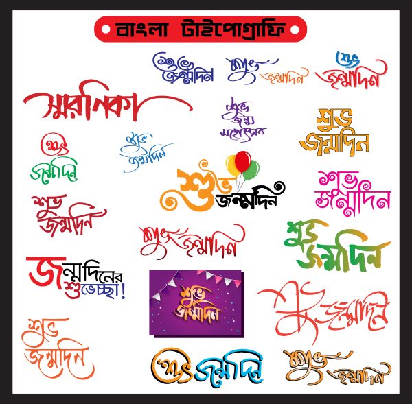 শুভ জন্মদিন বাংলা টাইপোগ্রাফি ডিজাইন